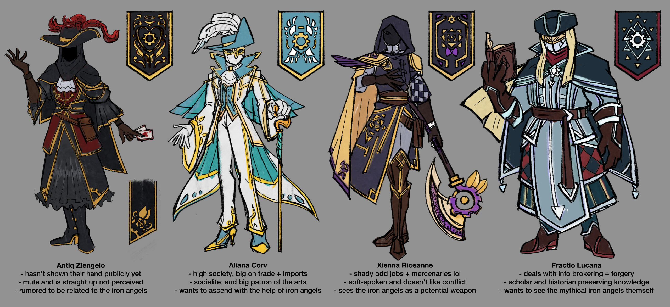 Sketch concepts of Arxxon criminal family heads